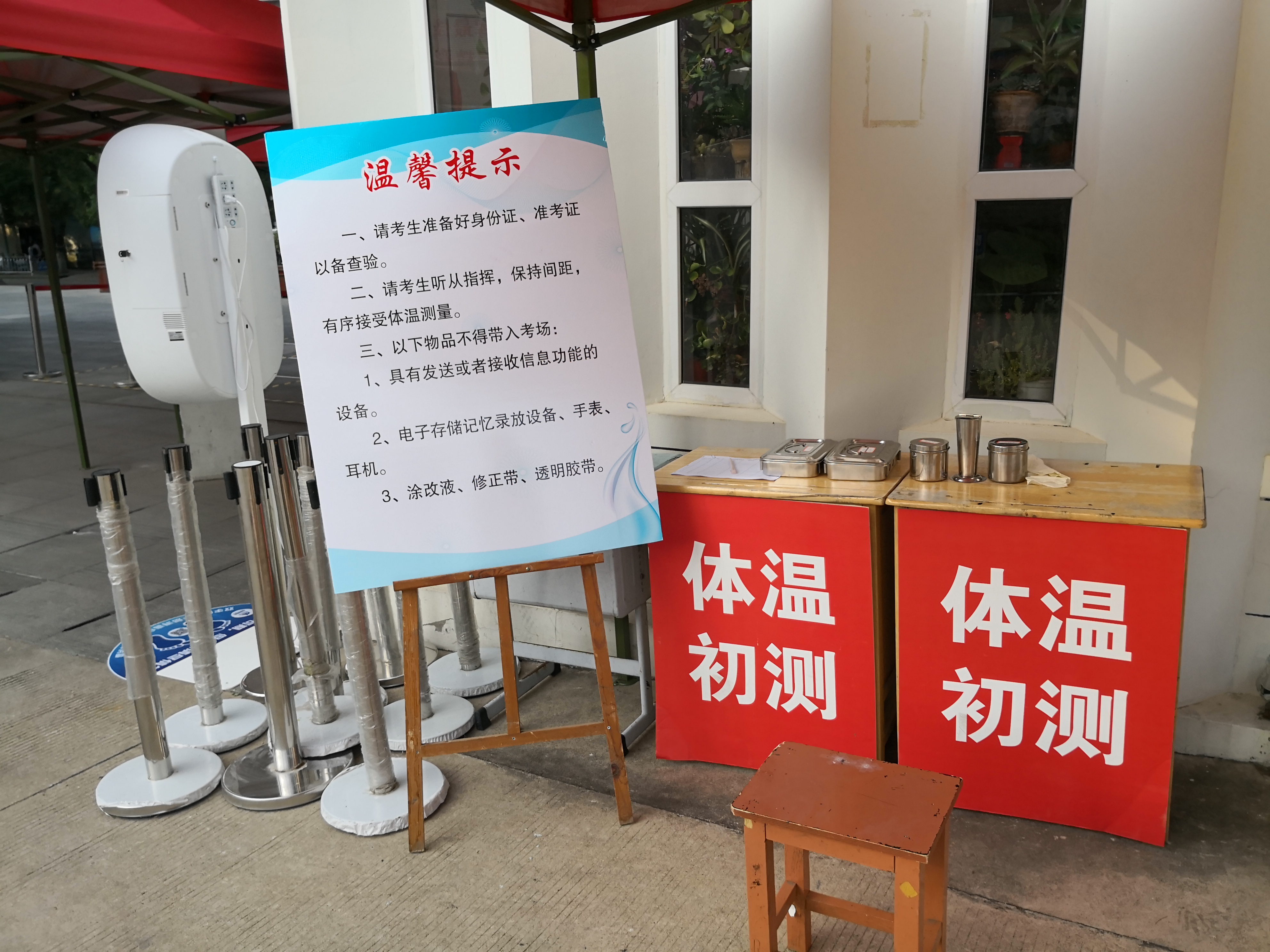 2020年徐州市普通高考于今日开考,为进一步做好徐州市高考期间新冠肺炎疫情防控卫生保障工作,维护好广大考生和考务人员的生命安全和身体健康,确保高考工作顺利举行,根据江苏省教育考试院、江苏省卫生健康委要求,按照市委市政府专题会议部署,市疾控中心成立了高考新冠肺炎疫情防控卫生指导工作专班,在考点派驻专职人员参与现场保障,指导考场分区与设置备用隔离考场,考虑到昨日和今日气温较高,指导部分考点增设检查通道,增设隔热隔雨棚,快速引导考生正常入场,最大限度消除新冠疫情对考生的不良影响,当前情况是昨日和今日晨所有考务人员健康排查无异常,正常执考,今日市区各考点的入场检测与排查评估顺利进行,驻点防疫检测检验均无异常,所有考生均正常参加考试!无异常体征考生进入隔离考场,第一场考试已在正常进行中,徐州市疾控中心祝愿广大考生高考取得佳绩!