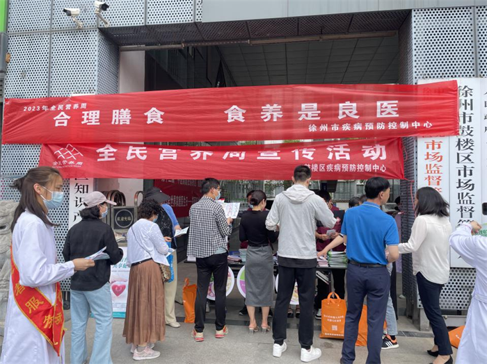 为贯彻落实《“健康江苏2030”规划纲要》和《江苏省国民营养计划实施方案2018-2030》,深入推进合理膳食行动,进一步提高我市居民营养健康素养和健康水平。5月18日,徐州市疾控中心联合鼓楼区疾控中心走进鼓楼区黄楼街道办事处共同开展了以“合理膳食 食养是良医”为传播主题,“健康中国 营养先行”为宣传口号的全民营养周宣传活动。