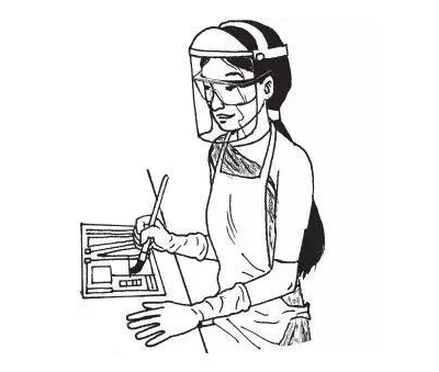 使用时:应双手小心戴或摘眼镜,不要损坏镜片;眼部防护用品应尽量专人专用,如多人共用或有眼疾传染的可能。